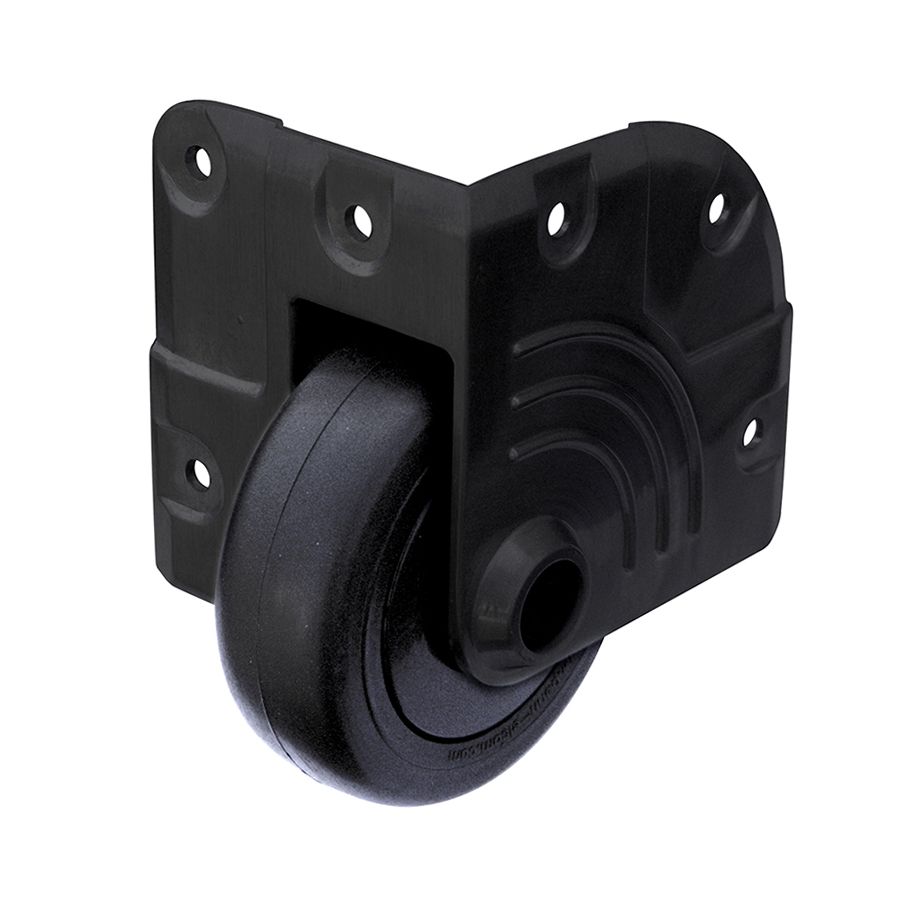 75mm Heavy Duty Zinc Recessed Corner Castor with Black Wheel. Offset to suit extrusions up to 35mm. Load Capacity: 150kg per Castor.